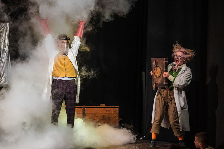 Pan Kleks, jak wiadomo, przepada za wynalazkami, technicznymi nowinkami i wszystkimi niekonwencjonalnymi sposobami ulepszania (niekoniecznie upraszczania) codzienności. Mało kto jednak wie, że wszelkich badań i innowacji dokonuje się w tajnym laboratorium. Będzie to wycieczka po technologicznym zapleczu Akademii Pana Kleksa. Wraz z szalonym docentem Pigwą i jego niewiele bardziej zrównoważoną asystentką Hegel zaprezentujemy w akcji m.in. ciekły azot, ciekły tlen, polimery. Będziemy mrozić, podpalać i wybuchać, a wszystko to na styku nauki i czarów.